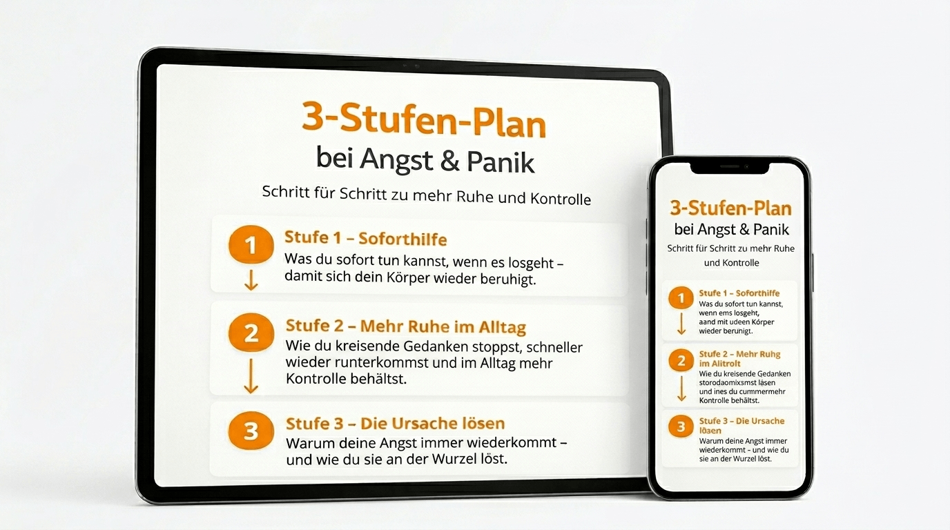 Mit dem 3-Stufen-Plan bei Angst & Panik zeige ich dir, was du tun kannst, wenn die Panik kommt, wie du das Herzrasen, den Schwindel und das Zittern in wenigen Minuten stoppst und wie du langfristig verstehst, warum die Panikattacken immer wieder auftauchen und wie du sie an der Wurzel löst.